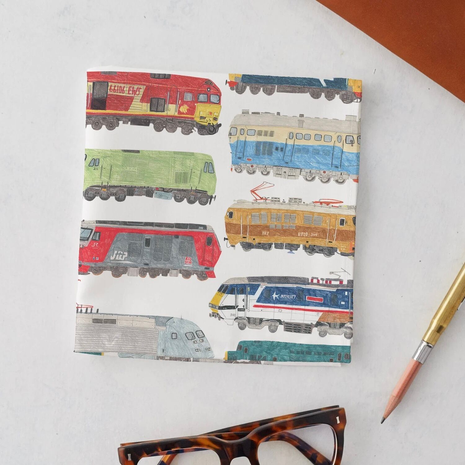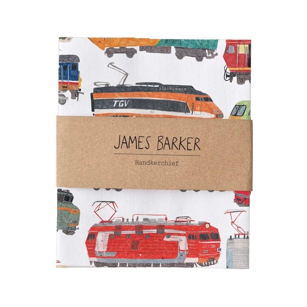 20世紀後半の世界中のヴィンテージ列車のイラストがプリントされたハンカチです。