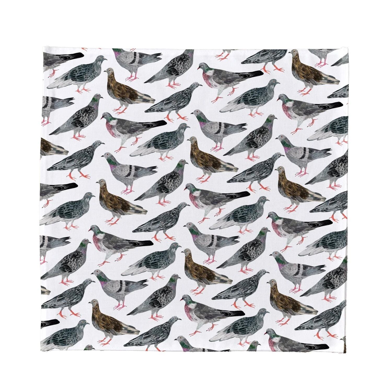 近づくと逃げていく鳩のイラストがプリントされたハンカチです。